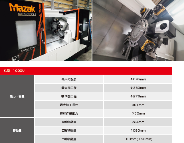 ビルトインモータ主軸、高剛性機械構造を採用し、旋削からミル加工、Y軸仕様など、高い加工能力を実現。